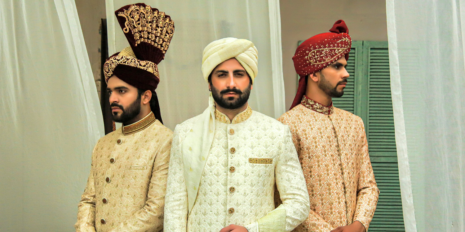 Cream Royal Traditional Handwork and Embroidered Sherwani Set