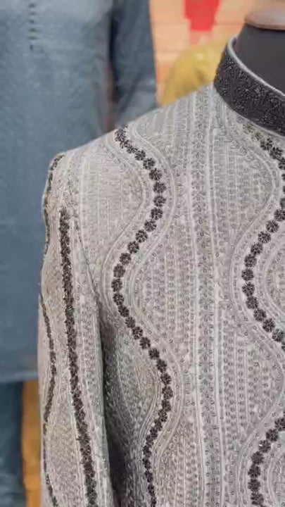 Dark Grey Embellished Sherwani Set